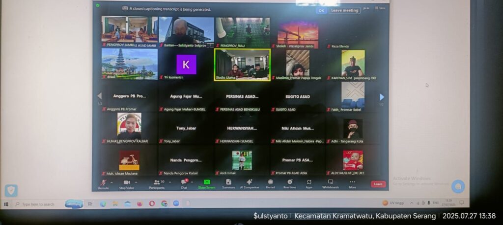 Serang (27/7) — Sebagai langkah memperkuat koordinasi dan sinergi informasi publik, Departemen Promosi dan Pemasaran PERSINAS ASAD menggelar rapat koordinasi (rakor) nasional secara daring pada Minggu. Kegiatan ini diikuti oleh perwakilan dari 42 titik yang tersebar di 19 provinsi.