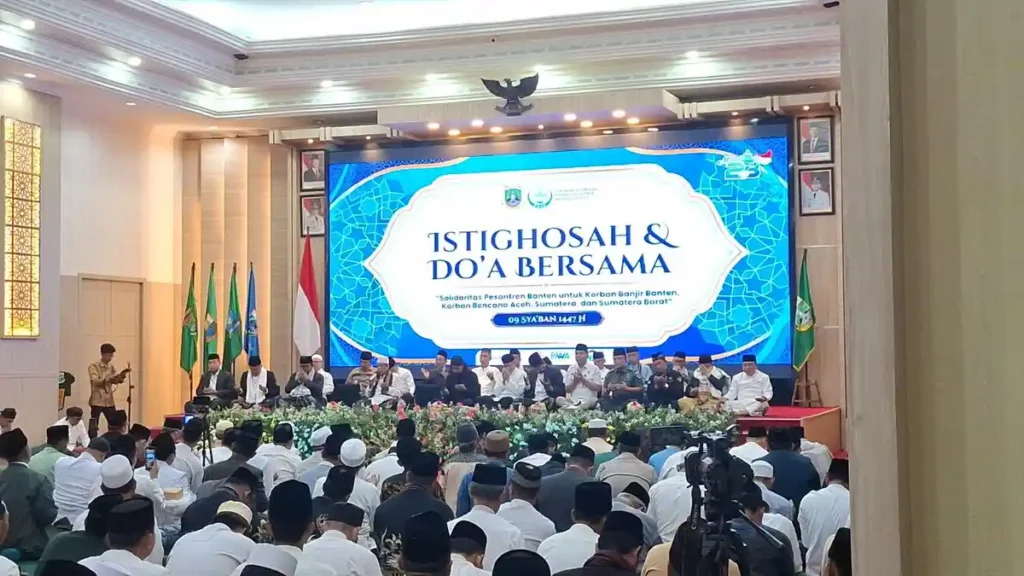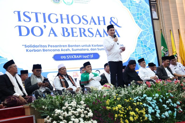 Serang (28/1) – Milad FSPP K-23 Wagub Achamad Dimyati Natakusuma bersama para ulama, pimpinan pondok pesantren, santri, dan pejabat daerah bertempat di Pendopo Gubernur Banten, Kota Serang, Rabu (28/1/2026), untuk menggelar istighosah dan doa bersama bagi para korban bencana banjir yang melanda sejumlah wilayah di Indonesia.