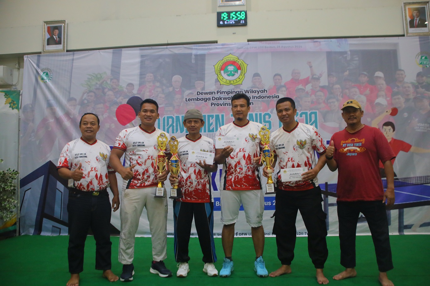 Tim DPD LDII Kota Tangerang berhasil meraih juara pertama Turnamen Tenis Meja Kedua Piala DPW LDII Banten 2025 yang digelar di Gedung LDII Banten, Kramatwatu, Kabupaten Serang, Senin 18 Agustus 2025.