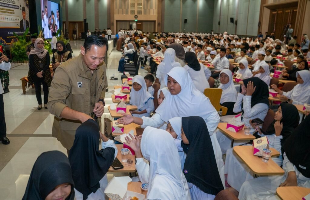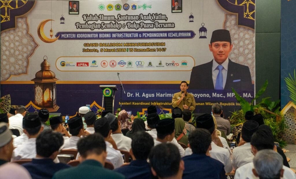 Jakarta (6/3). Menteri Koordinator Bidang Infrastruktur dan Pembangunan Kewilayahan Agus Harimurti Yudhoyono (AHY) menegaskan, pembangunan sumber daya manusia melalui pendidikan menjadi kunci utama dalam menentukan masa depan Indonesia. Hal itu ia sampaikan saat menjadi pembicara dalam acara “Kuliah Umum, Santunan Anak Yatim Pembagian Sembako dan Buka Bersama”, di Pondok Pesantren (Ponpes) Minhajurrosyidin, Jakarta, pada Rabu (5/3).
