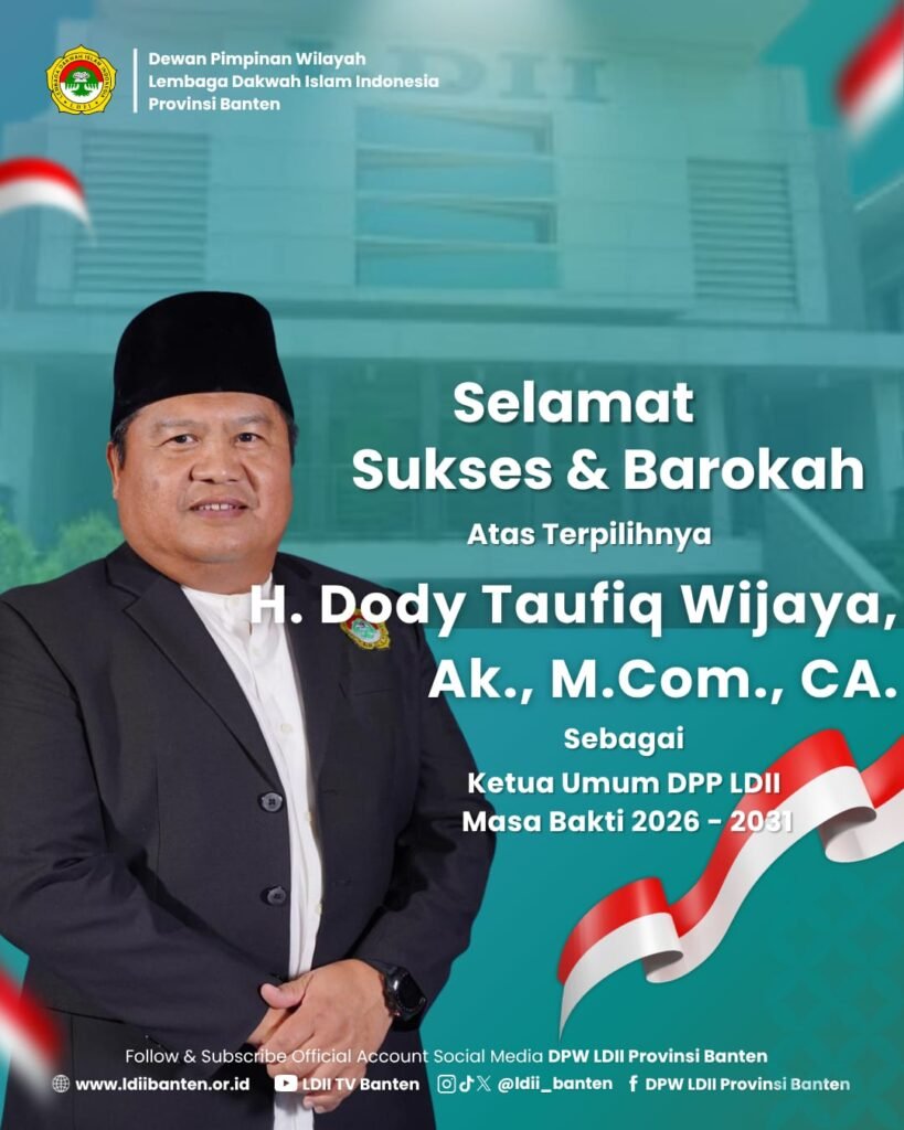 “Integritas Pak Dody sudah teruji, loyalitasnya tidak diragukan. Kami yakin beliau akan melanjutkan legacy H. Chriswanto Santoso dan membawa LDII semakin nyata berkontribusi bagi bangsa. Selamat kepada Pak Dody Taufiq Wijaya, amanah besar telah dipercayakan oleh seluruh warga LDII. Semoga Allah SWT senantiasa memberikan kemudahan, kesehatan, kekuatan, dan keberkahan dalam menjalankan tugas besar organisasi,” kata Ketua DPW LDII Banten, Dimo Tono Sumito, Sabtu 11 April 2026.